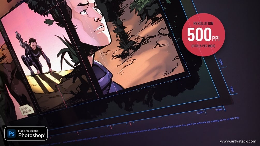 Time is gold! You don't want to spend time setting up a canvas size, resolution, margins, bleedings and panel grids. Create your comic book layout and place your artwork right away with these high-quality templates, from the rough thumbnails to the final inks. Comic Book Templates brings you ready-to-work files, with the essential guides you need to create that story you are dying to tell the world.