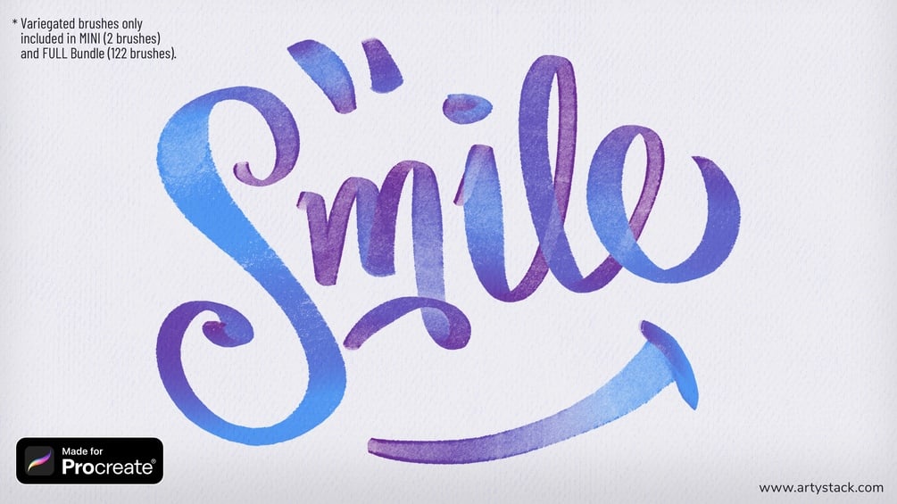 - Variegated brushes included in MINI and FULL Bundles. Select two swatches in your color palette and create colored blends within the same brushstroke.